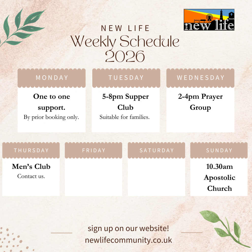 At New Life Community Centre, we are committed to creating a brighter future through inclusive programs that support families, youth, and vulnerable adults in Revoe, Blackpool. We also hold a weekly Christian prayer service which anyone can join.